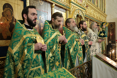 Его Высокопреосвященству сослужило монастырское духовенство.