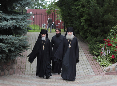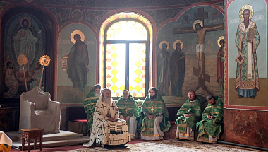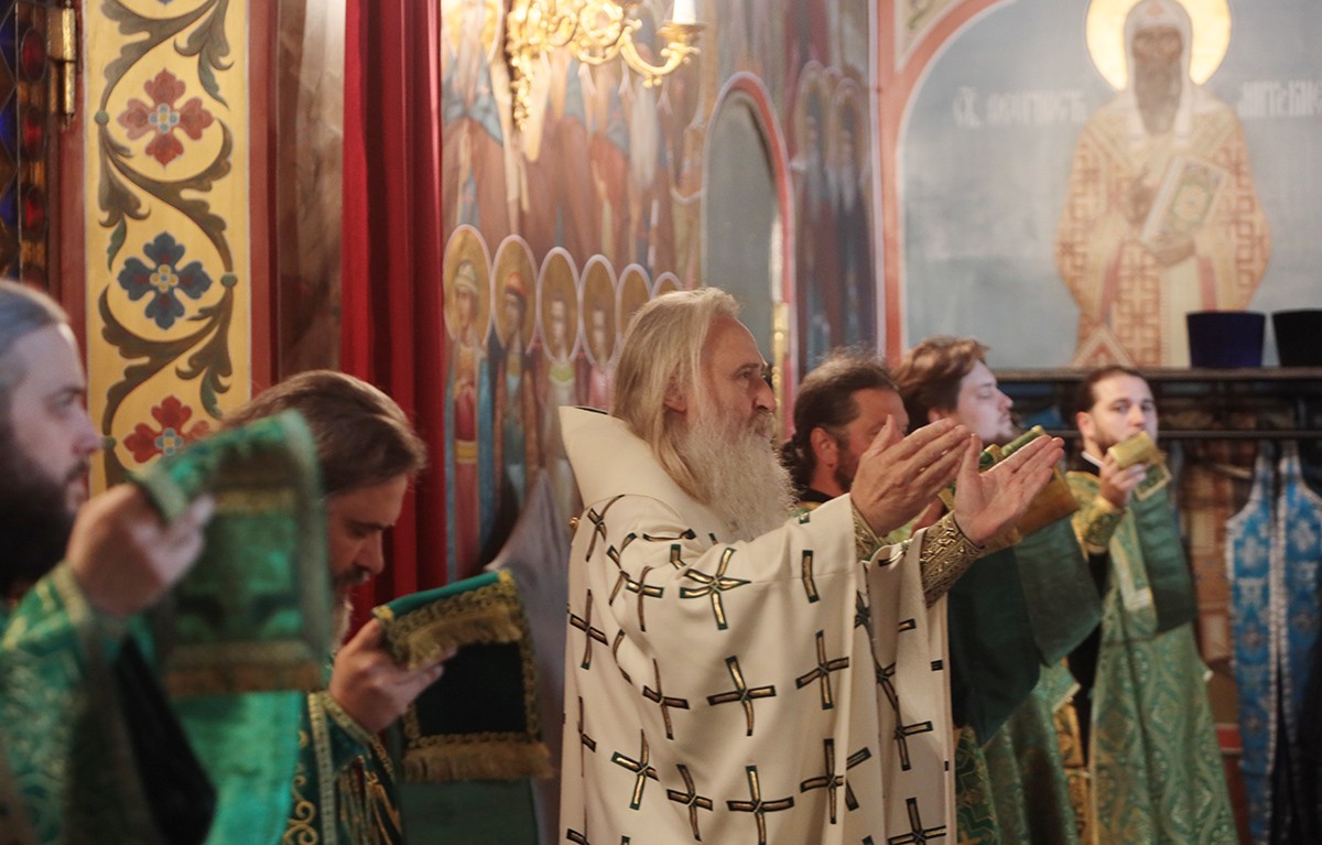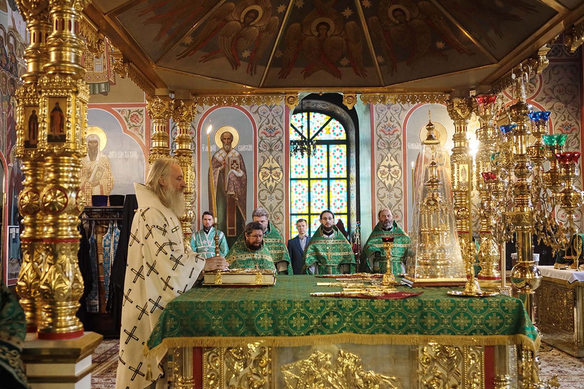За Божественной литургией в соборе в честь иконы Божией Матери «Черниговская Гефсиманская» Его Высокопреосвященству сослужили настоятель скита архимандрит Дамиан (Швецов) с братией в священном сане.