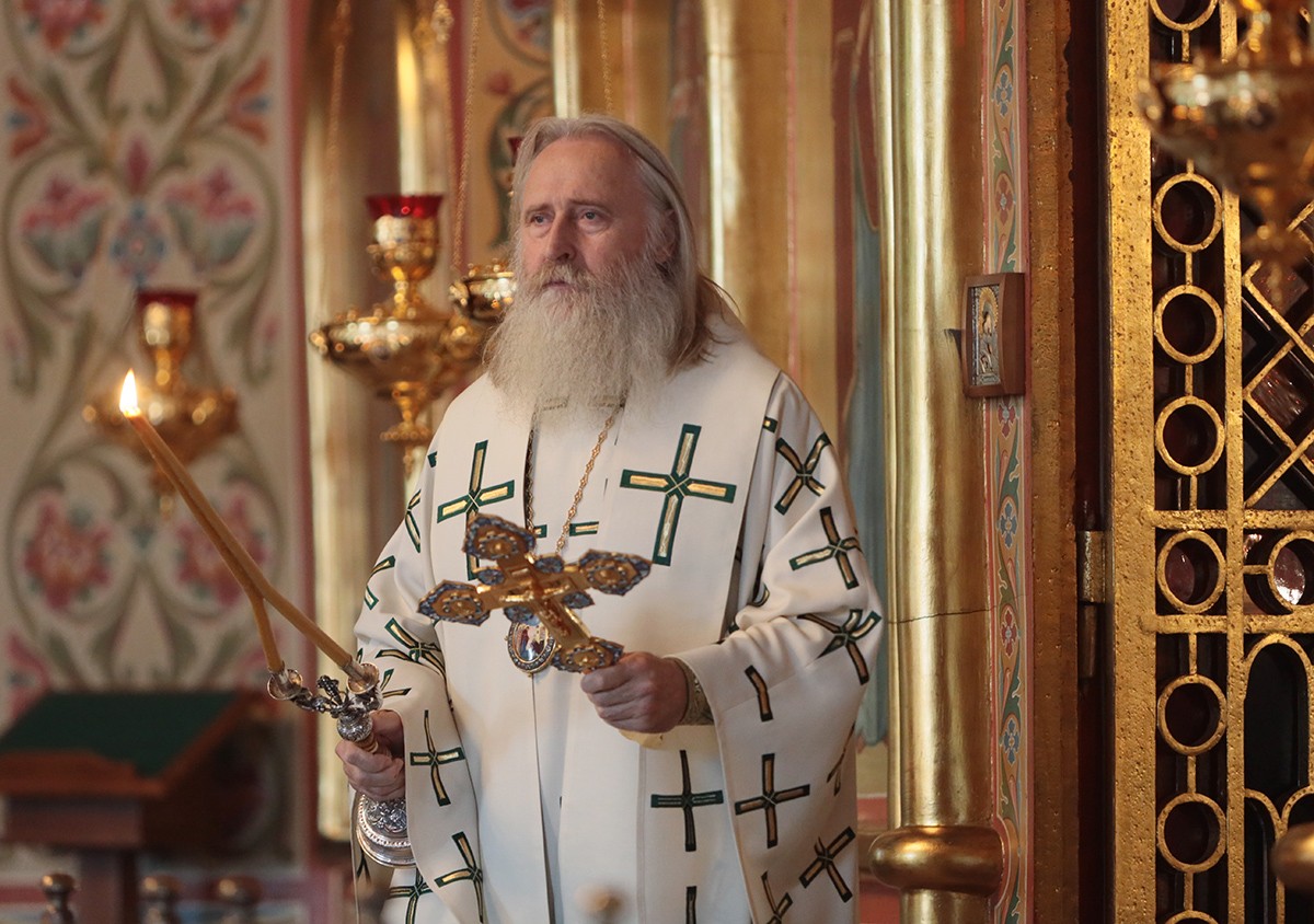 Затем Высокопреосвященнейший владыка Феогност обратился к собравшимся с архипастырским словом о значении Игумена земли Русской в духовной жизни православных христиан.
