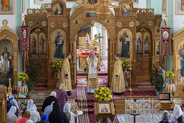Его Высокопреосвященству сослужили заместитель председателя Синодального отдела по монастырям и монашеству архимандрит Стефан (Тараканов), а также клирики обители.
