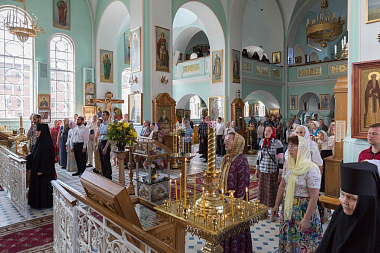 За богослужением молились: настоятельница монастыря игумения Людмила (Волошина); заместитель председателя Синодального отдела по монастырям и монашеству, настоятельница Зачатьевского ставропигиального женского монастыря игумения Иулиания (Каледа); сестры и прихожане обители.