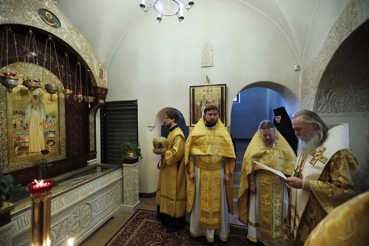 По окончании Литургии было совершено величание преподобномученице Великой княгине Елисавете перед ракой с частицей ее честных мощей и прочитана молитва святой.