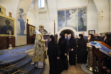 Его Высокопреосвященству в Покровском соборе обители сослужило духовенство Марфо-Мариинской обители милосердия.
