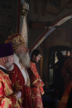 Его Высокопреосвященству в Покровском соборе обители сослужили наместник монастыря епископ Воскресенский Дионисий с братией в священном сане.