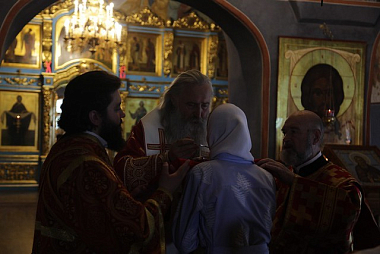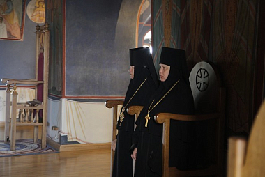 В числе молящихся за богослужением присутствовали заместитель председателя Синодальной комиссии по монастырям и монашеству, настоятельница Зачатьевского ставропигиального женского монастыря игумения Иулиания (Каледа) и настоятельница Марфо-Мариинской обители милосердия игумения Елисавета (Позднякова).