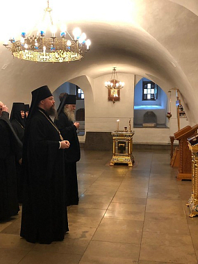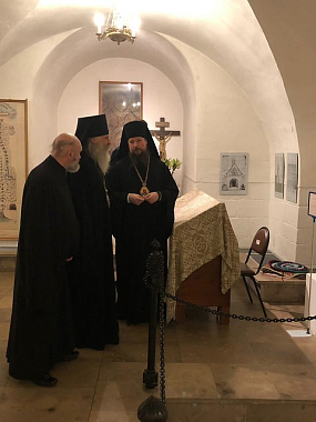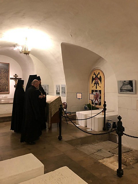 По окончании Литургии архипастыри и гости обители совершили краткое заупокойное поминовение по всем почившим от рода бояр Романовых в храме-усыпальнице преподобного Романа Сладкопевца.