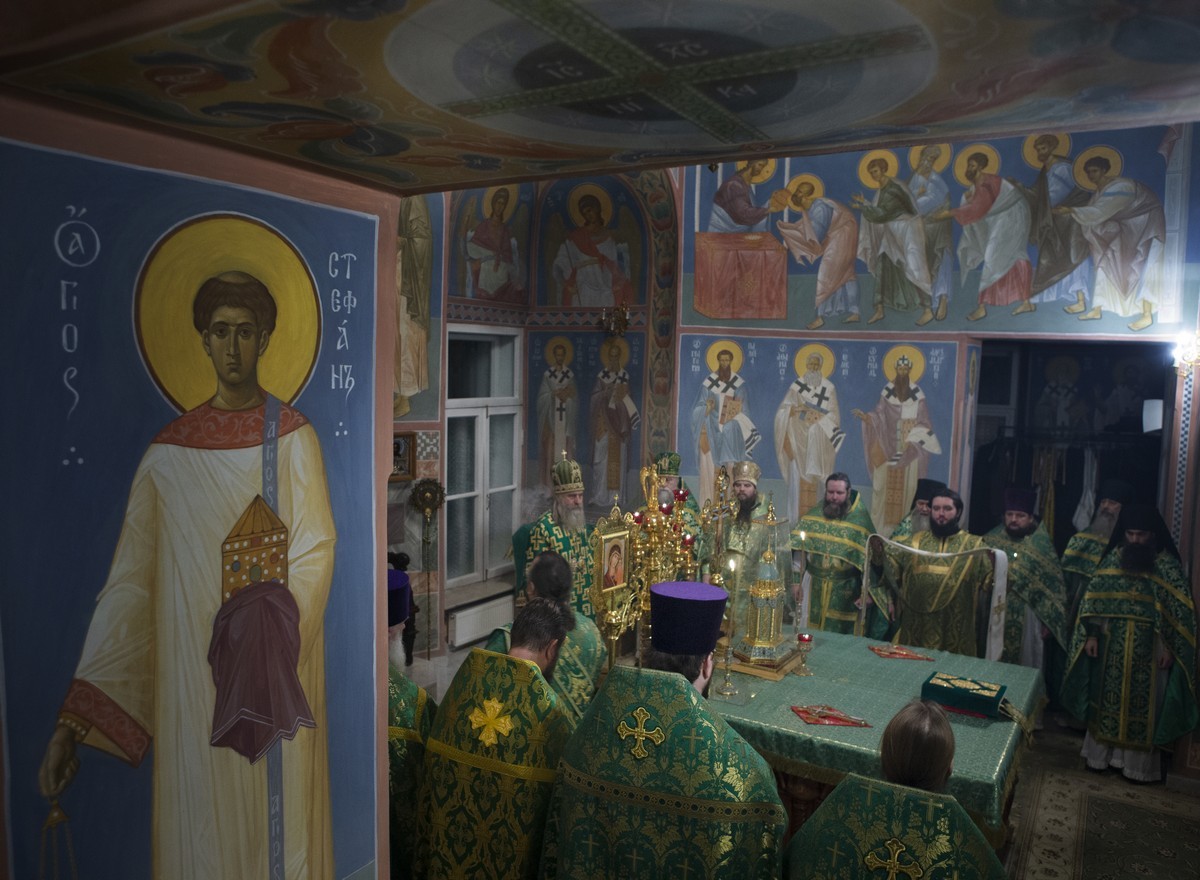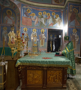 По окончании Литургии было совершено славление и исполнен тропарь празднуемым святым и архиепископ Феогност прочитал молитву перед ракой с их честными мощами.
