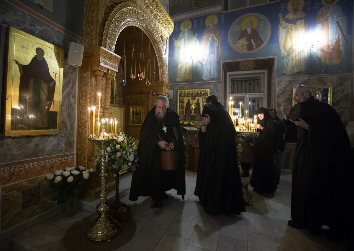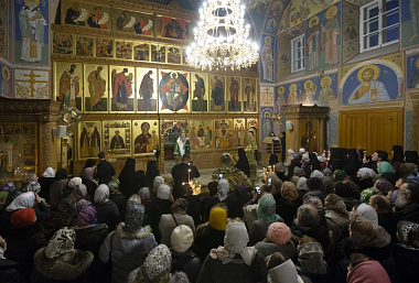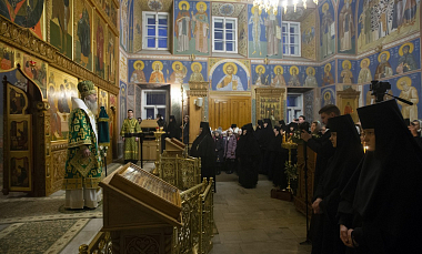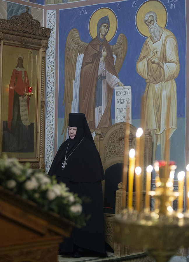 Накануне была отслужена малая вечерня с акафистом преподобным Кириллу и Марии. Всенощное бдение совершил архимандрит Макарий (Веретенников), насельник Троице-Сергиевой лавры, профессор Московской духовной академии, член Синодальной литургической комиссии.