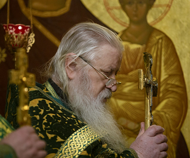 Затем владыка Феогност передал молящимся благословение Святейшего Патриарха Московского и всея Руси Кирилла и поздравление с праздником и обратился к собравшимся с архипастырским словом:
