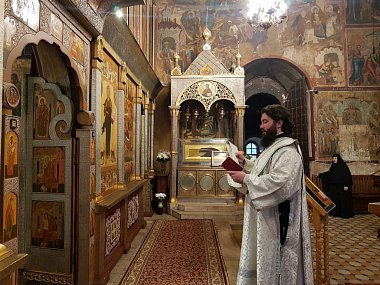 В монастырском соборе Рождества Божией Матери Его Высокопреосвященству сослужили наместник обители архимандрит Павел (Кривоногов) с братией в священном сане.