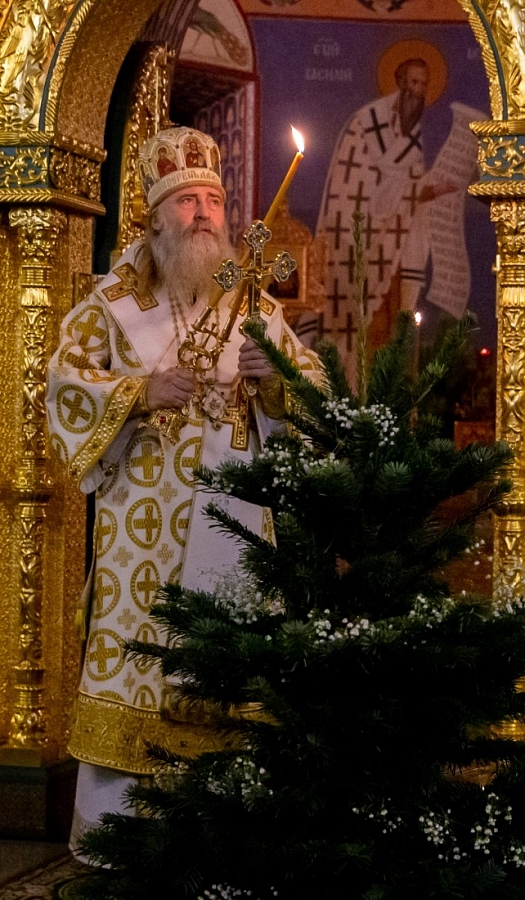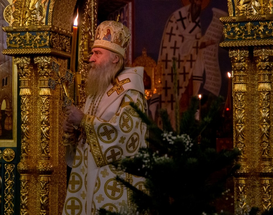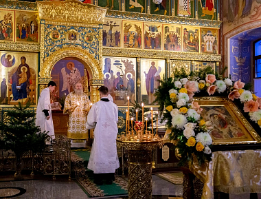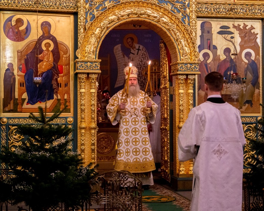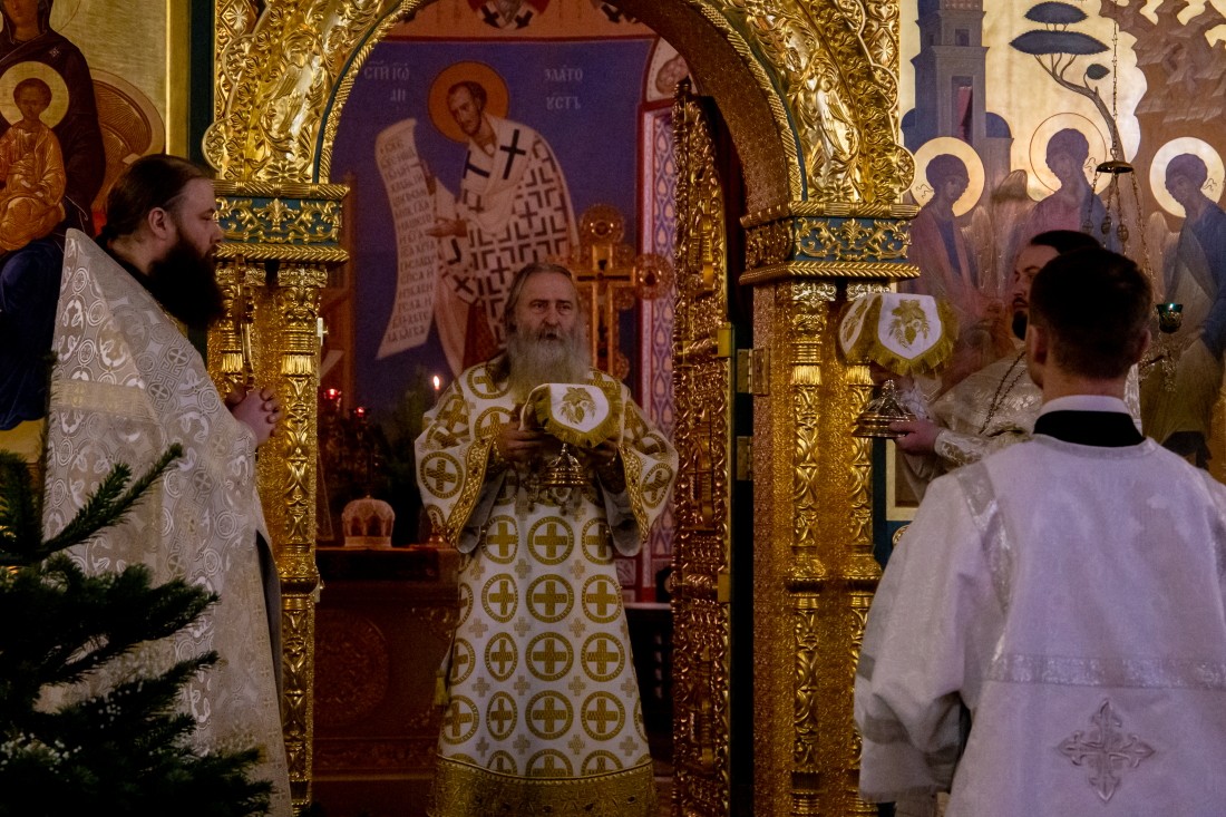 По окончании богослужения владыка Феогност поздравил настоятельницу монастыря игумению Елисавету (Жегалову) и сестер обители, а также прихожан и паломников с праздником Рождества Христова.