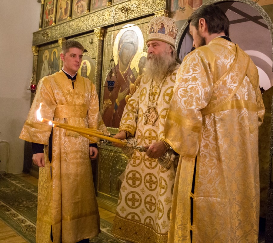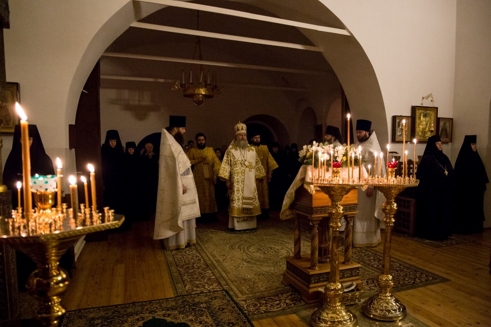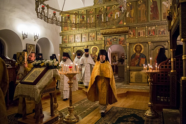 Его Высокопреосвященству сослужили клирики обители преподобного Сергия и Стефано-Махрищского монастыря, а также клирик храма иконы Божией Матери «Всех скорбящих Радость» на Большой Ордынке игумен Филарет (Тамбовский).