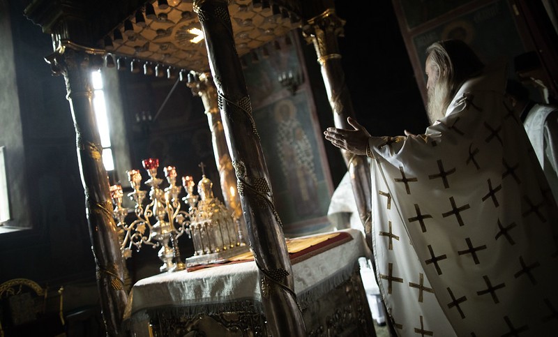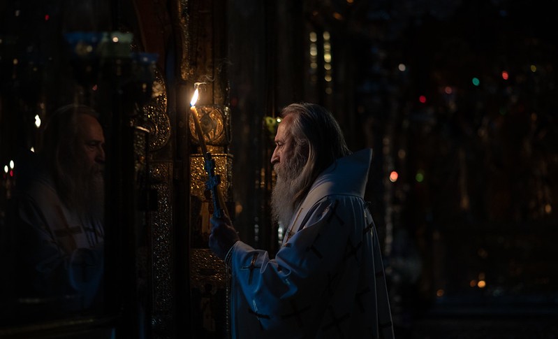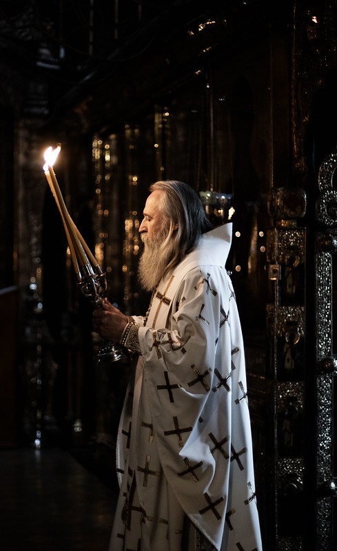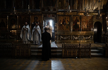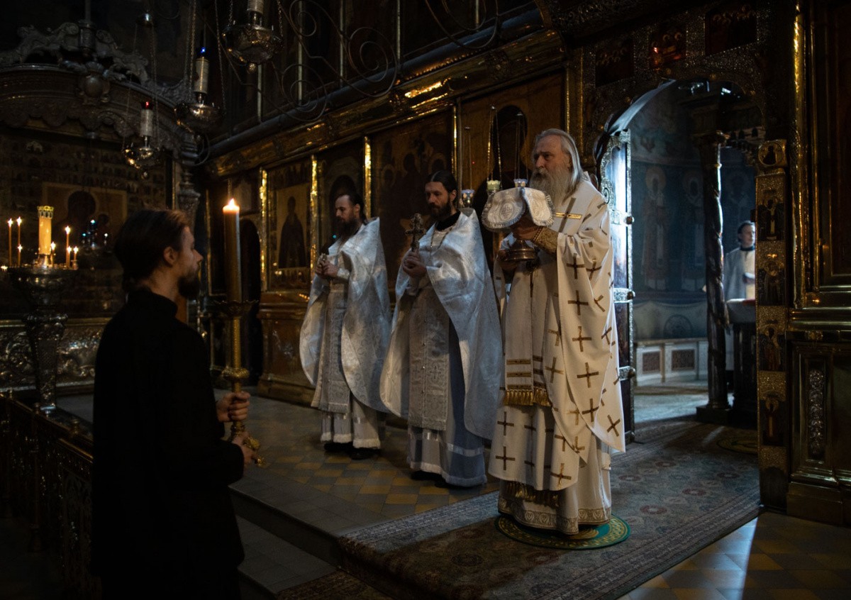 В Троицком соборе обители у мощей наставника великого князя – преподобного Сергия Радонежского – Его Высокопреосвященству сослужила братия монастыря в священном сане.