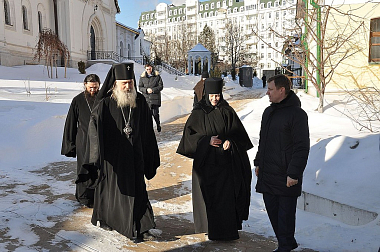 В завершение Высокопреосвященный владыка Феогност в игуменском корпусе провел коллегиальное собеседование с насельницами Марфо-Мариинской обители милосердия, представленными к монашескому постригу и принятию в число послушниц.