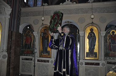 Были совершены часы, изобразительны и вечерня с Литургией. В конце изобразительных по Уставу было совершено поклонение Кресту, после чего Владыка внес Крест в алтарь в знак окончания Крестопоклонной седмицы.