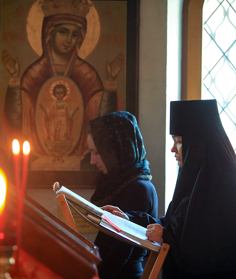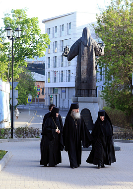 По окончании Литургии Высокопреосвященнейший владыка поклонился честным мощам основательниц Зачатьевской обители преподобных Иулиании и Евпраксии Московских, совершил славление и прочитал молитву святым.