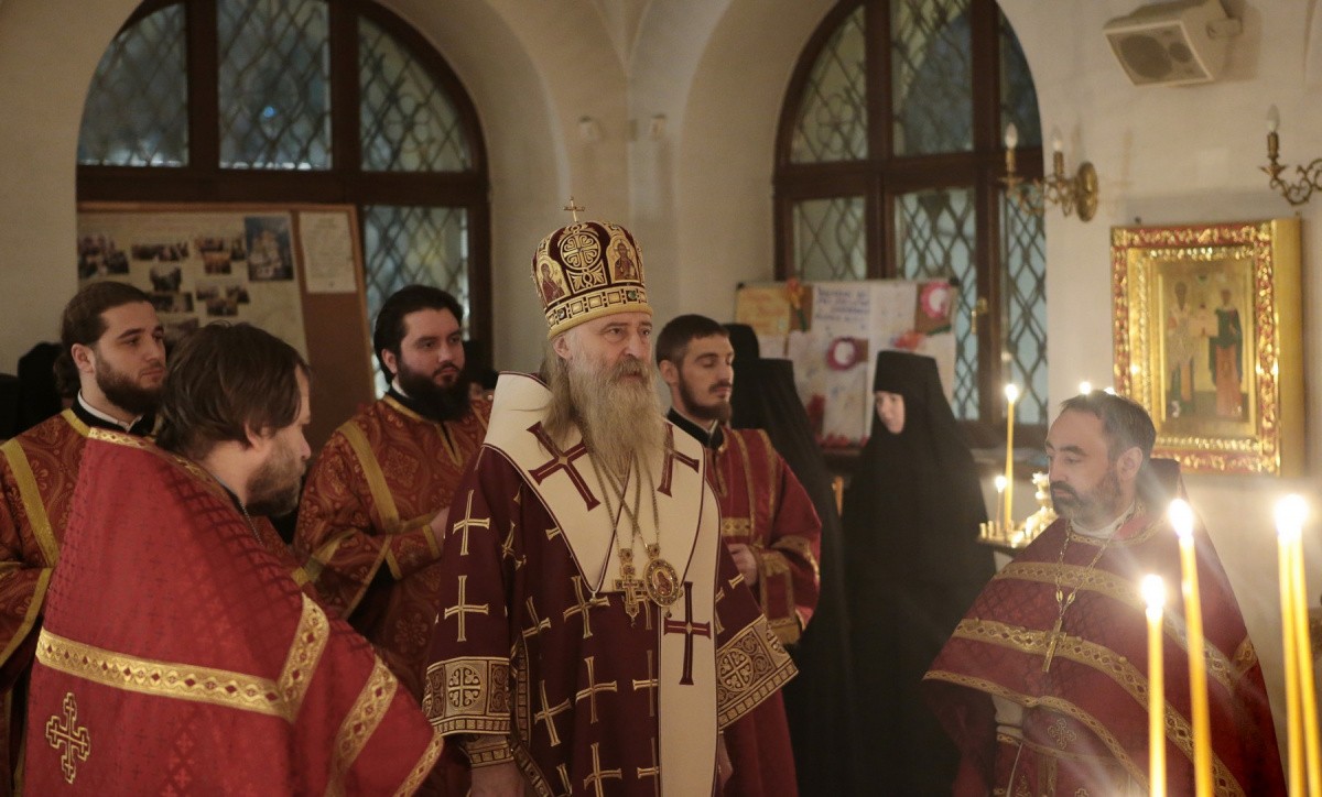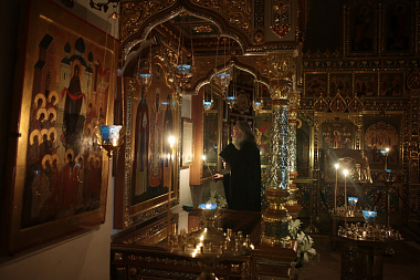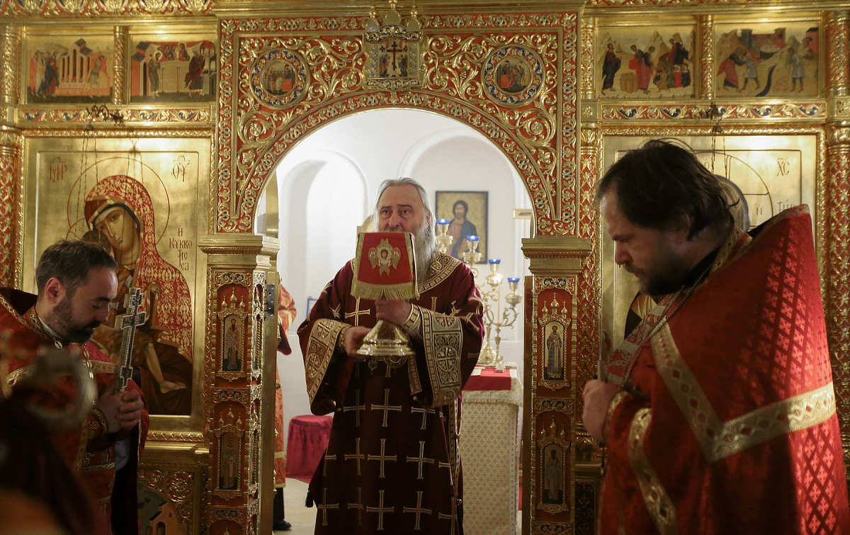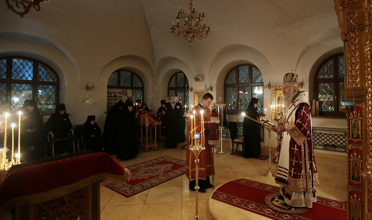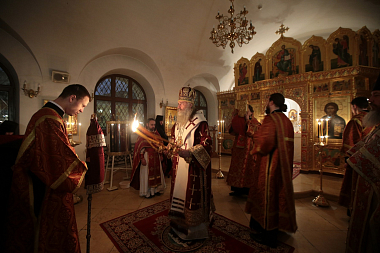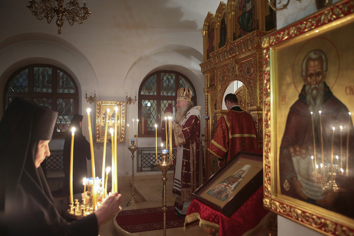 В приделе сщмч. Киприана и мчц. Иустины монастырского собора Его Высокопреосвященству сослужили клирики Зачатьевской обители.