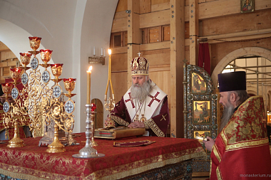 В этот день Божественную литургию в Богородице-Рождественском соборе монастыря возглавил председатель Синодального отдела по монастырям и монашеству архиепископ Сергиево-Посадский Феогност.