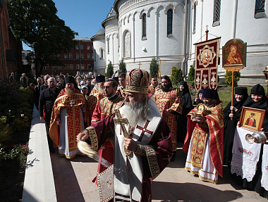 По окончании Литургии состоялся крестный ход вокруг собора Рождества Пресвятой Богородицы, после чего в храме было совершено славление с молитвой святой праведной Иулиании, княгине Вяземской и Новоторжской.