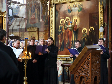 Великопостные богослужебные песнопения исполнил лаврский хор под управлением регента архимандрита Глеба (Кожевникова).