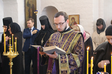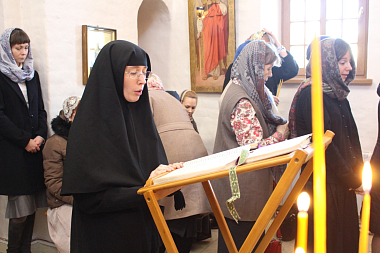 За богослужением в надвратном храме в честь Спаса Нерукотворного Образа молились заместитель председателя Синодального отдела по монастырям и монашеству, настоятельница монастыря игумения Иулиания (Каледа) с сестрами, заместитель министра финансов РФ А.Ю. Иванов, прихожане и гости обители.