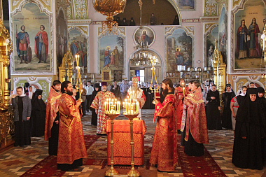 После отпуста на всенощном бдении прибывший вместе с Владыкой протодиакон Владимир Назаркин зачитал указ Его Святейшества о награждении настоятельницы Корецкого Свято-Троицкого ставропигиального женского монастыря игумении Рафаилы (Хильчук) орденом прп. Евфросинии, великой княгини Московской, III степени по случаю 65-летия со дня ее рождения.