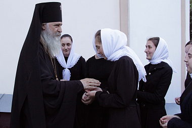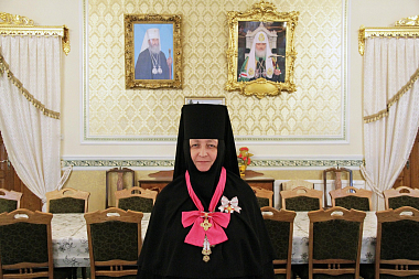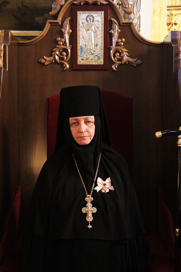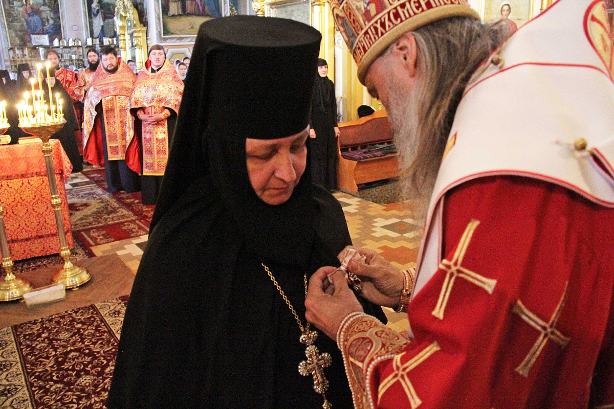 В завершение Его Высокопреосвященство поздравил матушку игумению с праздником от себя лично и от имени братии Троице-Сергиевой лавры и подарил ей памятный крест с украшениями.