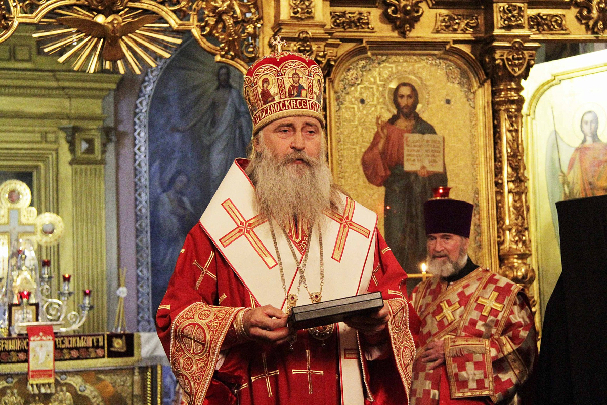 Высокопреосвященнейший владыка Феогност вручил награду юбиляру.