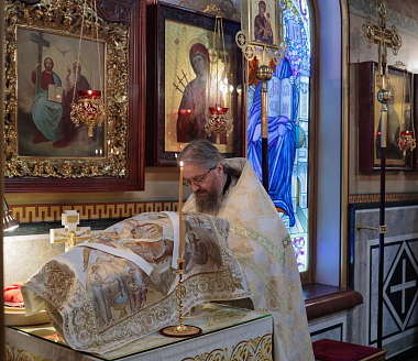 Диаконское служение совершали диакон Иоанн Афанасьев, клирик Троице-Сергиевой лавры; диакон Даниил Нагорный, клирик Московского Троицкого подворья Свято-Троицкой Сергиевой лавры, и диакон Стефан Ковальчук.