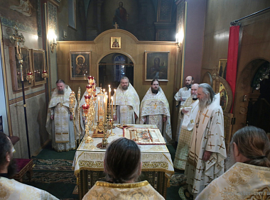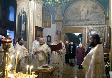 Его Высокопреосвященству сослужили начальник Московского Валаамского подворья игумен Иосиф (Крюков), братия Валаамской обители и подворья в священном сане.