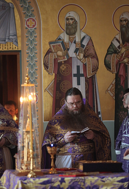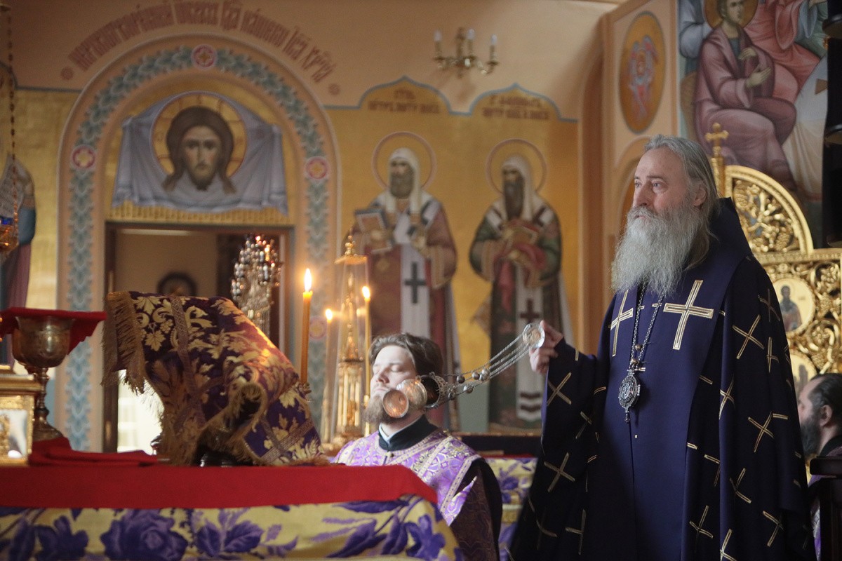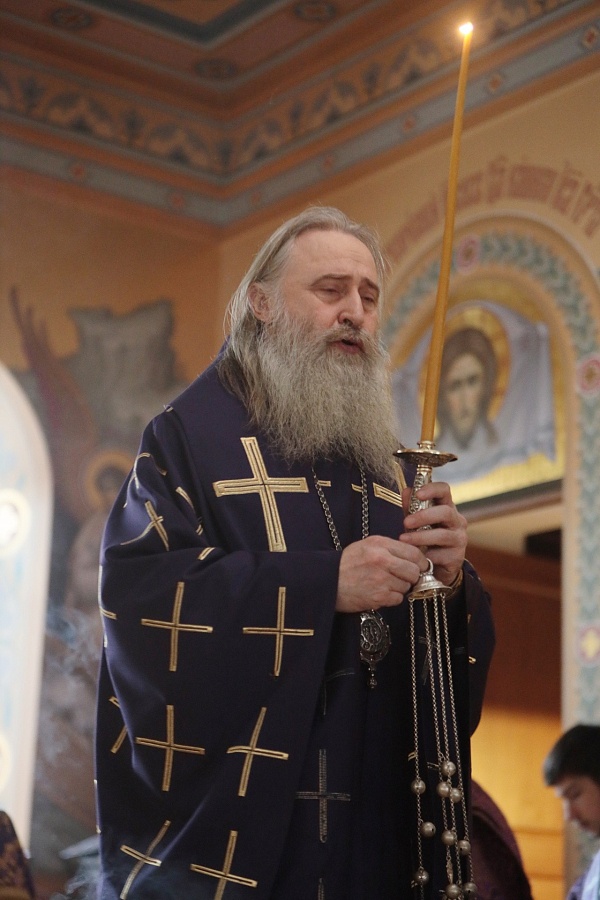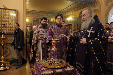 По окончании Литургии началась вечерня с чтением канона вмч. Феодору Тирону, после чего архиепископ Феогност совершил освящение колива.