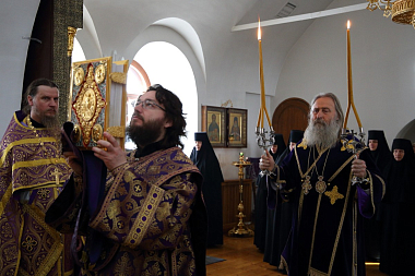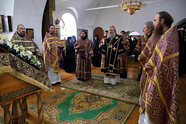 Его Высокопреосвященству сослужило духовенство обители Преподобного Сергия Радонежского и священник Стефано-Махрищского монастыря иерей Александр Мельников.