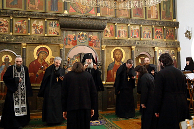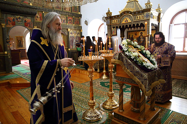 По завершении Божественной литургии владыка Феогност обратился к молящимся с архипастырским словом, призвав не верить своим помыслам, которые зачастую являются внушением лукавых духов, и побеждать помыслы благодарением Богу как за скорбное, случающееся с нами, так и за благое, поскольку всё, что попускается нам Богом, служит нам ко спасению.