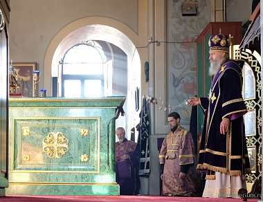 Его Высокопреосвященству сослужили наместник Воскресенского Ново-Иерусалимского ставропигиального мужского монастыря архимандрит Феофилакт (Безукладников), заместитель председателя Синодального отдела по монастырям и монашеству архимандрит Стефан (Тараканов), а также клирки обители старший священник и духовник протоиерей Артемий Владимиров и протоиерей Сергий Теплов.
