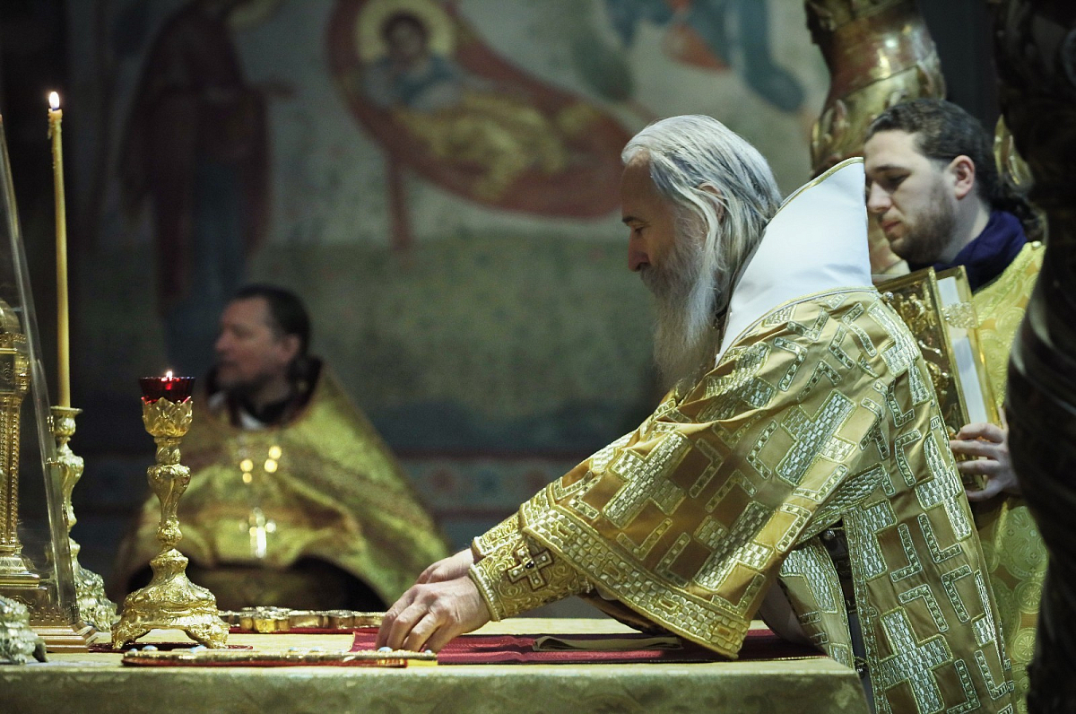 Перед началом богослужения архиепископу Феогносту передали Указ Святейшего Патриарха Московского и всея Руси Кирилла о назначении его наместником Донского ставропигиального мужского монастыря.