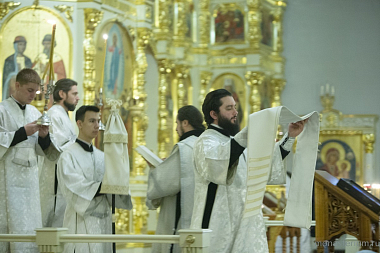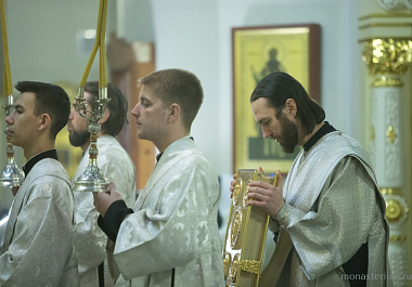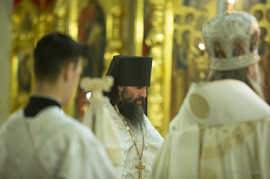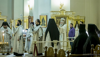 Его Высокопреосвященству в Вознесенском храме обители сослужило духовенство монастыря и клирики обители преподобного Сергия.