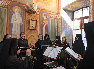 Церковные песнопения исполнил сестринский хор, а также мужской хор храма Живоначальной Троицы в Останкине. Благолепное пение двух хоров дополнило торжественную атмосферу престольного праздника.