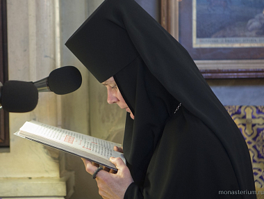 По окончании богослужения архиепископ Феогност поздравил матушку Ксению с очередной годовщиной ее хиротесии и передал Ее Высокопреподобию, насельницам, духовенству и прихожанам обители поздравление и благословение Святейшего Патриарха Московского и всея Руси Кирилла по случаю дня памяти Небесного покровителя обители.