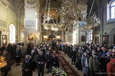 В этот день вечерню и Литургию Преждеосвященных Даров в монастыре возглавил председатель Синодального отдела по монастырям и монашеству, наместник Свято-Троицкой Сергиевой лавры архиепископ Сергиево-Посадский Феогност.