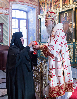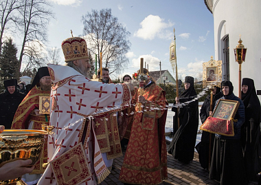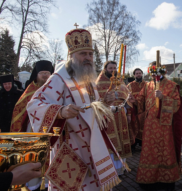 В завершение архиепископ Феогност передал игумении Елисавете, сестрам и прихожанам обители благословение Святейшего Патриарха Московского и всея Руси Кирилла и поздравление с праздником Светлого Христова Воскресения, а также произнес проповедь о пасхальной радости в жизни христианина.