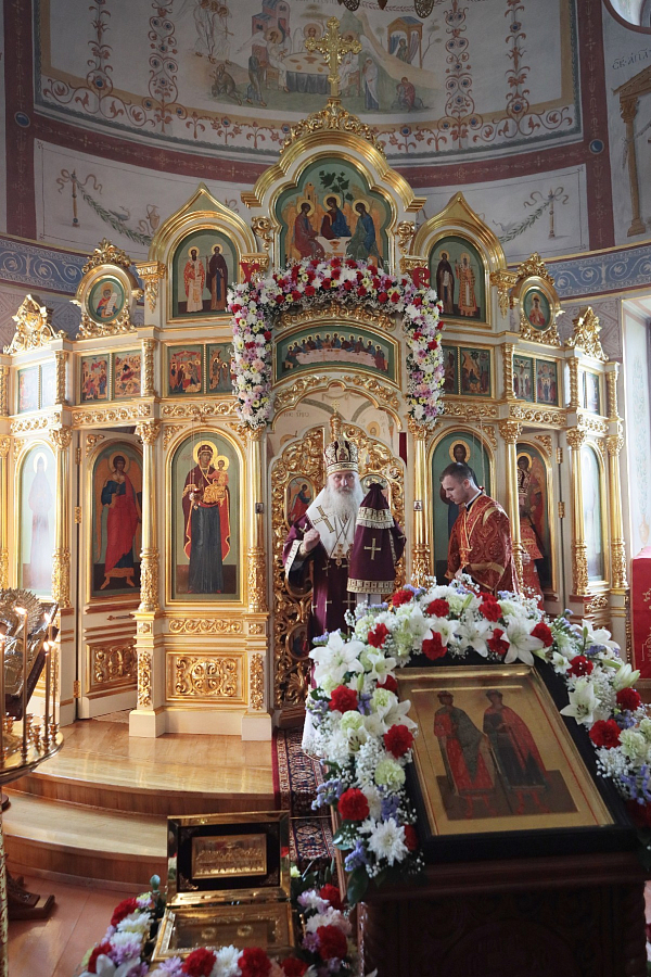 Накануне было отслужено торжественное всенощное бдение с акафистом святым князьям-страстотерпцам.