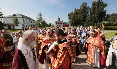 Его Высокопреосвященству сослужили наместник Саввино-Сторожевского ставропигиального мужского монастыря архимандрит Павел (Кривоногов) и духовенство Аносина монастыря.