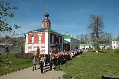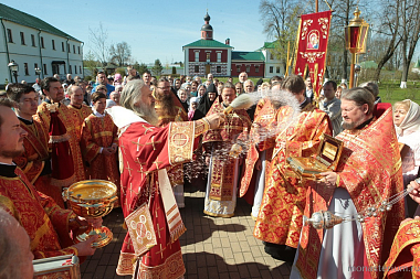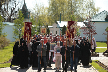 По заамвонной молитве состоялся праздничный молебен с крестным ходом и обнесением частицы мощей святых благоверных князей и страстотерпцев Бориса и Глеба по территории обители.