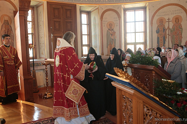 От имени Святейшего Патриарха Московского и всея Руси Кирилла архиепископ Феогност поздравил настоятельницу монастыря игумению Марию (Солодовникову) с сестрами, прихожан, благочестивых паломников и богомольцев с престольным праздником обители и передал всем Патриаршее благословение.