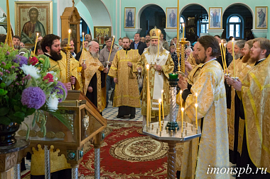 Его Высокопреосвященству сослужили клирики монастыря и других храмов Санкт-Петербурга.