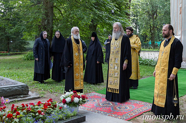 После праздничной трапезы владыка Феогност отправился на подворье монастыря в дер. Вартемяги, где на монастырском кладбище отслужил панихиду по приснопоминаемой схиигумении Серафиме (Волошиной) и новопреставленному протоирею Георгию Очкалову.