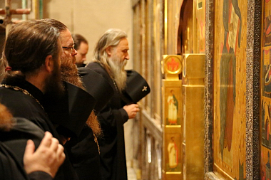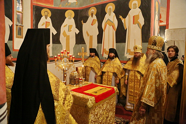 Его Высокопреосвященству сослужили заместитель председателя Синодального отдела по монастырям и монашеству архимандрит Стефан (Тараканов) и духовенство Угрешской обители.