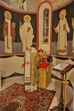 По благословению Святейшего Патриарха Московского и всея Руси Кирилла праздничную раннюю Божественную литургию в Никольском соборе обители возглавил председатель Синодального отдела по монастырям и монашеству, наместник Троице-Сергиевой лавры архиепископ Сергиево-Посадский Феогност.
