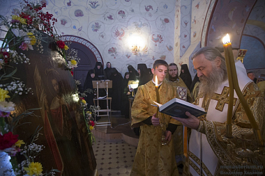 Его Высокопреосвященству сослужили иеромонах Даниил (Константинов), исполняющий обязанности наместника Заиконоспасского ставропигиального мужского монастыря, и клирики этой обители.