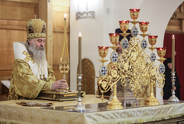 По окончании богослужения Его Высокопреосвященство совершил панихиду по приснопоминаемому Патриарху Алексию II, святым покровителем которого был свт. Алексий Московский.